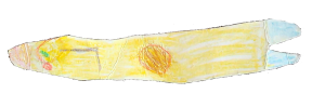 Ein erster Versuch einen Fisch zu malen. Auch wenn jeder weitere mehr Ähnlichkeit mit einem Fisch hat, ist diese frühe Version meine liebste.